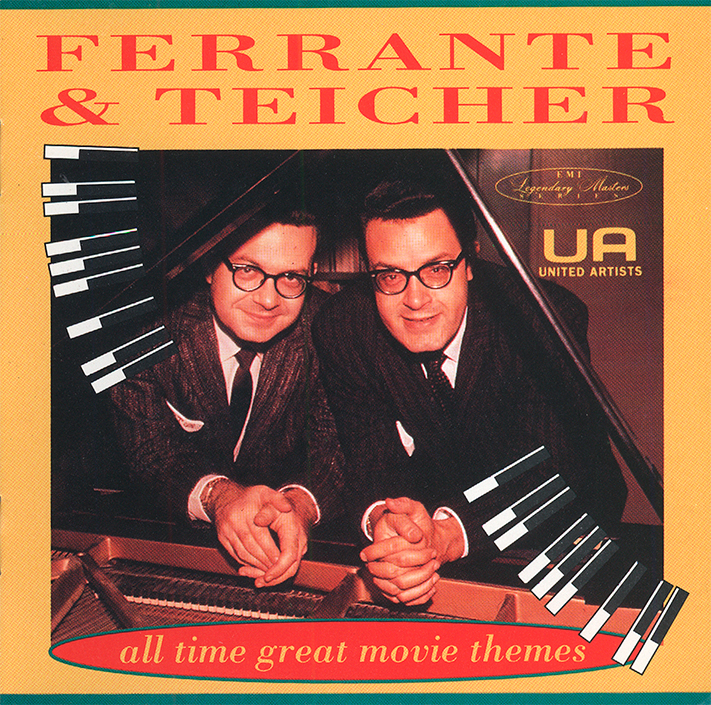 During the course of the twenty year association with United Artists Records, the peerless piano duo of Arthur Ferrante and Louis Teicher were affectionately dubbed “the movie theme team.” This was a well-earned nickname indeed. Starting in 1960 with the international success of their recording of “Theme From The Apartment (Jealous Lover),” Ferrante & Teicher brought instrumental film music to new heights of popularity. Before the end of the decade they had sold over 20 million records, and no less than 30 of their albums charted in Billboard between 1961 and 1972 — statistics impressive enough to turn most of the rock bands that dominated this era green with envy.